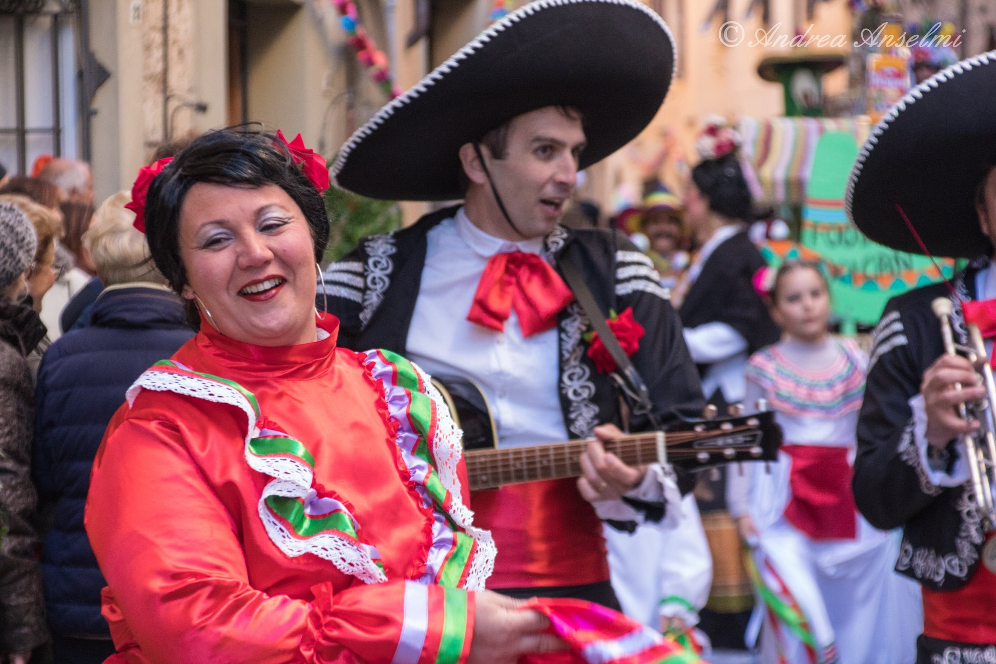 - Carnevale di Satùrnia: Noto per la Bruscellata, una processione di carri agricoli decorati (i “bruscelli”) trainati da buoi o trattori, pieni di oggetti della vita contadina. È un inno alla cultura rurale, accompagnato da canti popolari (i “bruscelletti”) e grandi mangiate comunitarie.