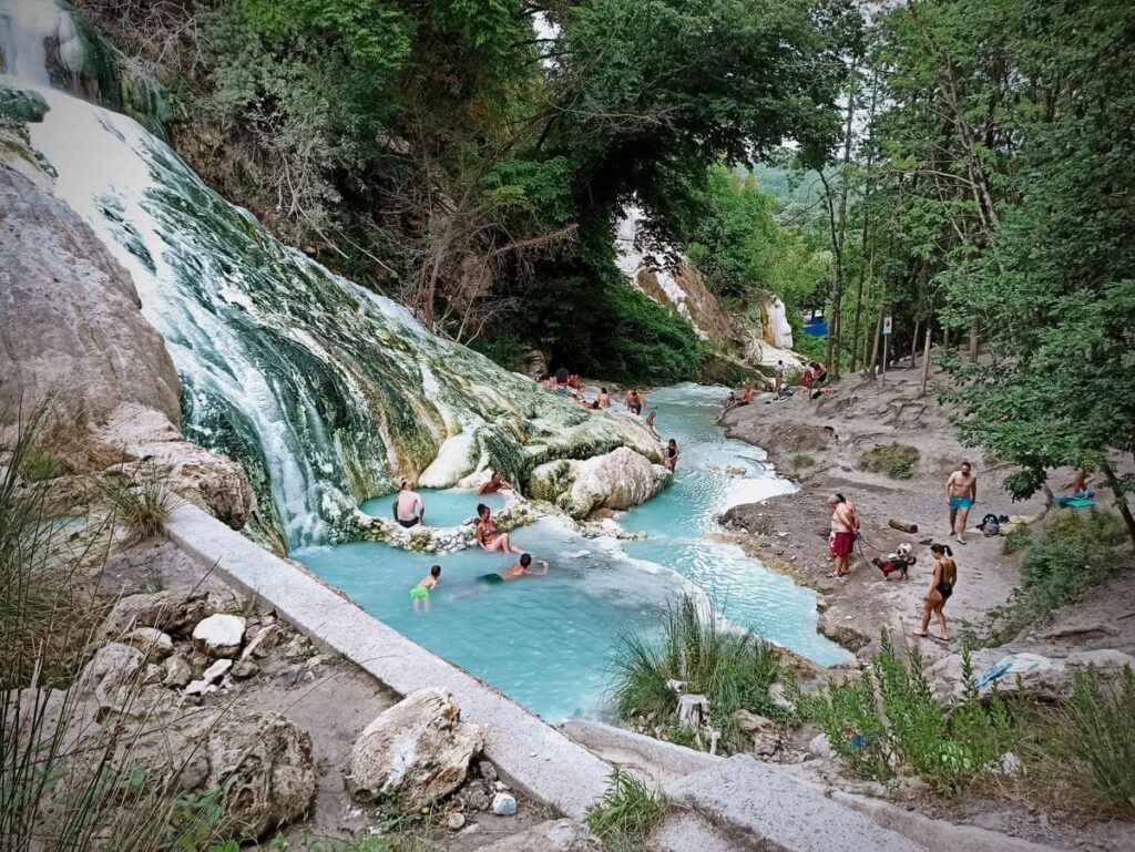 - Il luogo: Le Cascate di Bagni San Filippo, con le loro formazioni calcaree bianchissime (la “Balena Bianca”) e le pozze di acqua termale calda (fino a 52°C).