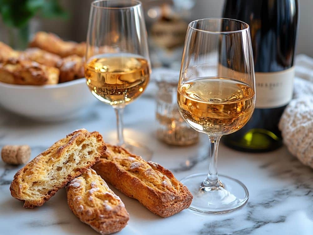 Il Moscadello è il partner ideale per la pasticceria secca e da forno toscana. I suoi sentori floreali e fruttati esaltano le spezie e la frutta secca senza sovrastarle.